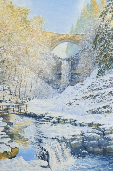 Ashgill Force, our North Pennines beauty spot on the perfect sunny winter’s day. Watercolour on paper 30 x 45cm. SOLD.