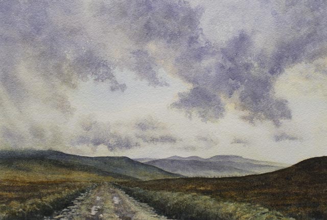 Cross Fell, clearing evening skies watercolour painting by Gillie Cawthorne. 45 x 30cm.