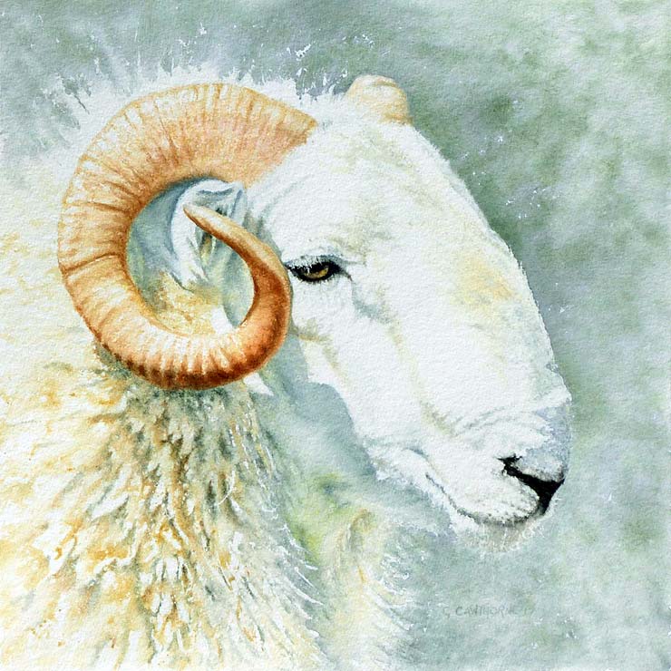 A fine figure of a Talybont Welsh sheep, at the Brecon County Show. Watercolour on paper 40 x 40cm. Selected for Great North Art Show 2022. Please contact Gillie for price.